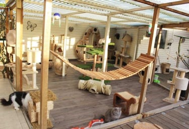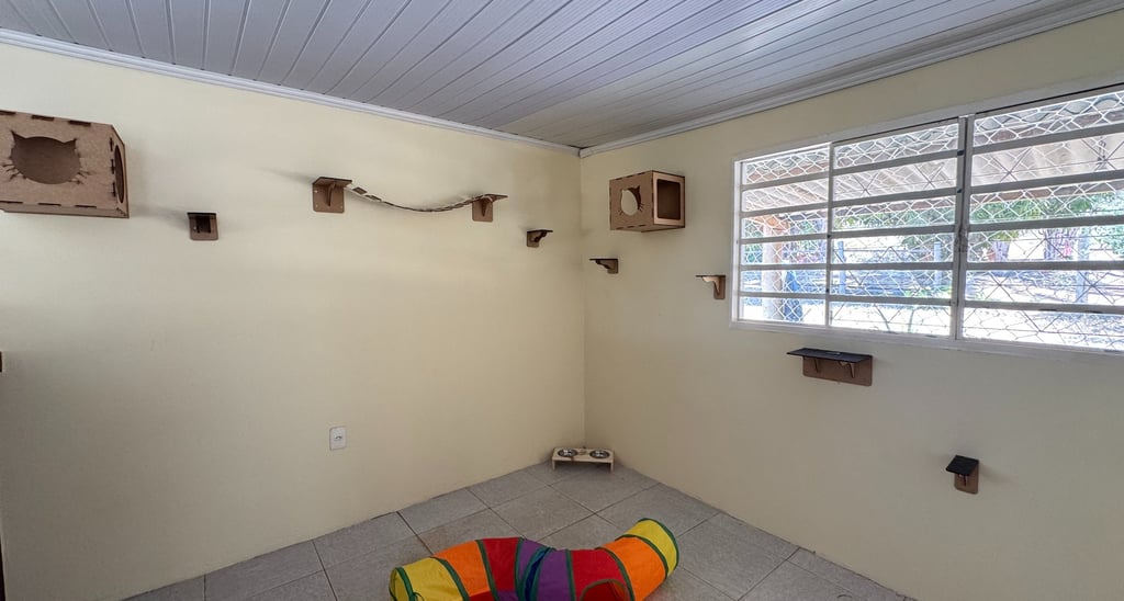Seu gato desfruta de liberdade em um ambiente seguro e monitorado, com atenção personalizada.
