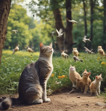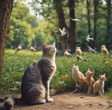 Explore momentos de paz e liberdade para seu gato na natureza.