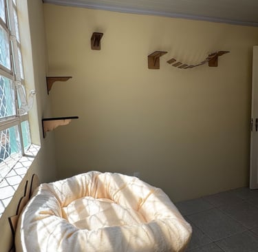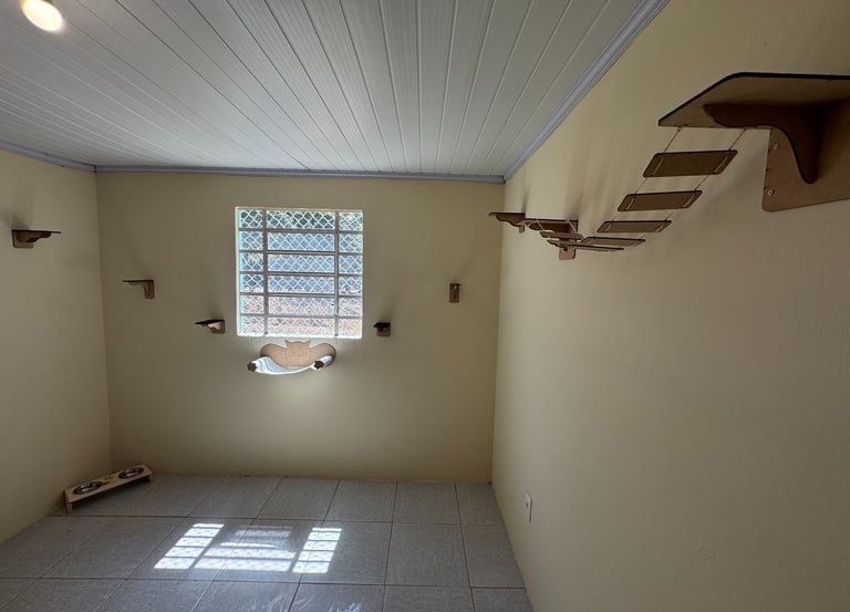 Seu gato relaxa em um espaço exclusivo e tranquilo, longe do estresse urbano.
